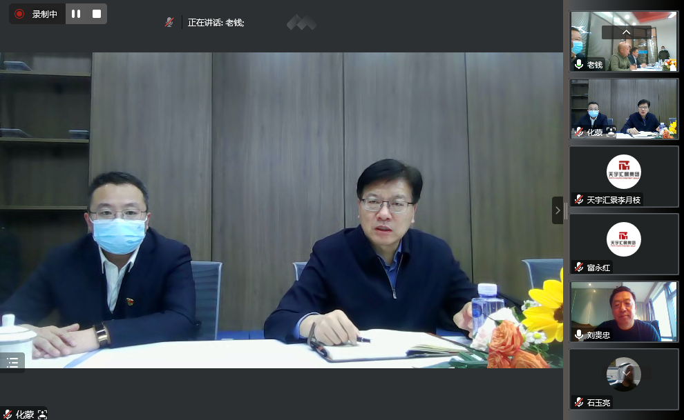 满洲里地区负责人钱满、内蒙古天誉公司总经理杨明功接待了于书记一行,内蒙古对外贸易公司董事长李劲松受邀参加了本次座谈会,集团董事局主席刘贵忠、集团副总裁石玉亮、直属公司总经理李月枝等领导通过视频会议方式参加了会议。