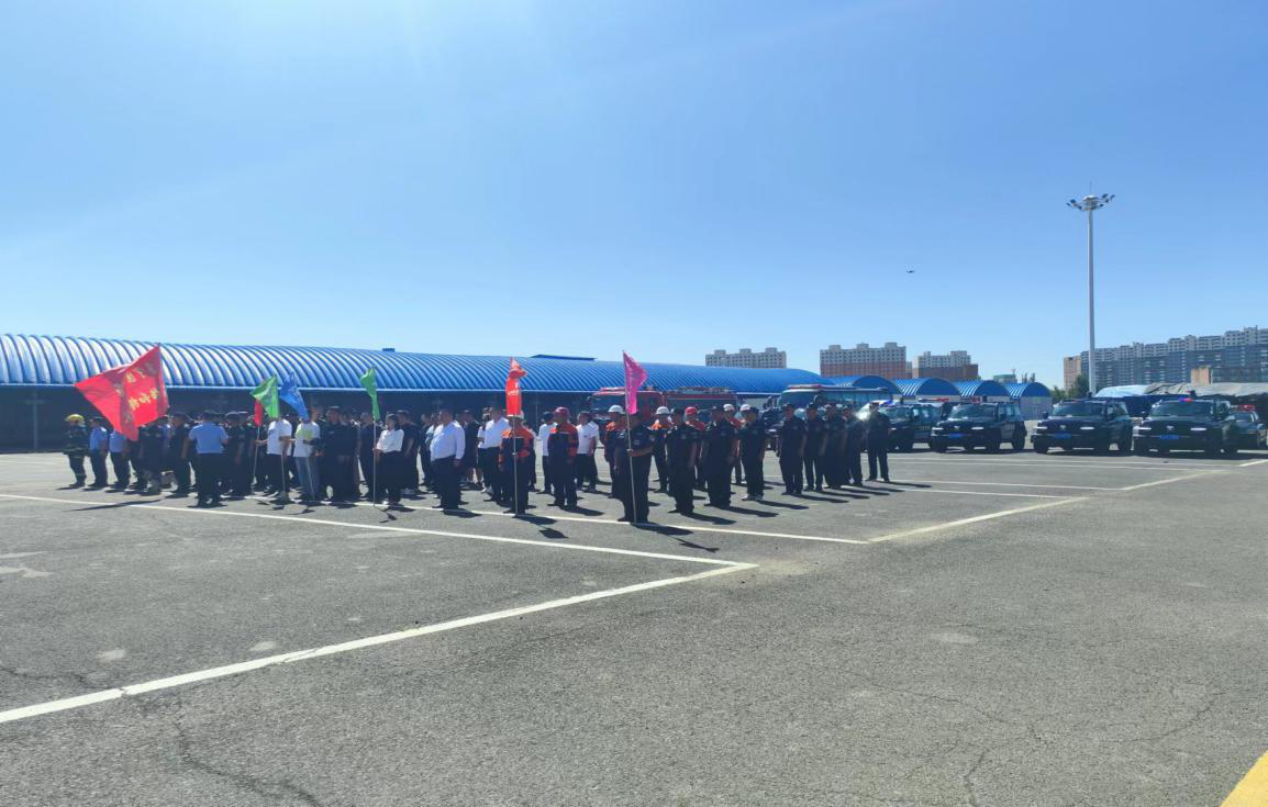 为全面贯彻落实乌兰察布市公安局《应对反恐防暴应急实战演练》要求,进一步提升全市公安机关及二级重点目标单位反恐应急处突实战能力。6月29日上午10:00—11:00集宁区公安局反恐怖和特巡警大队、集宁区消防救援大队、集宁区中心医院急救中心、天保丰肥业、天洋物流员工,国兴安保公司在天宇汇景集团集宁运营中心生产物流园区联合举行了反恐防暴消防应急演练,集宁运营中心全体员工参与和观摩了演练全过程。