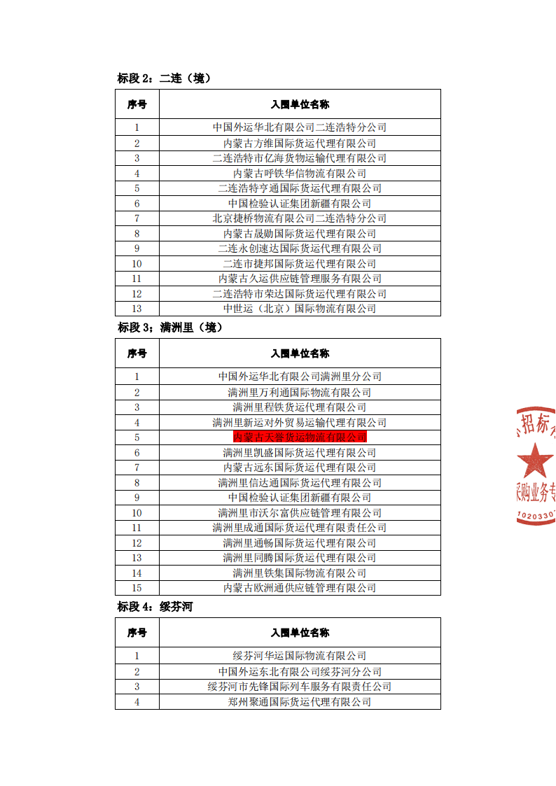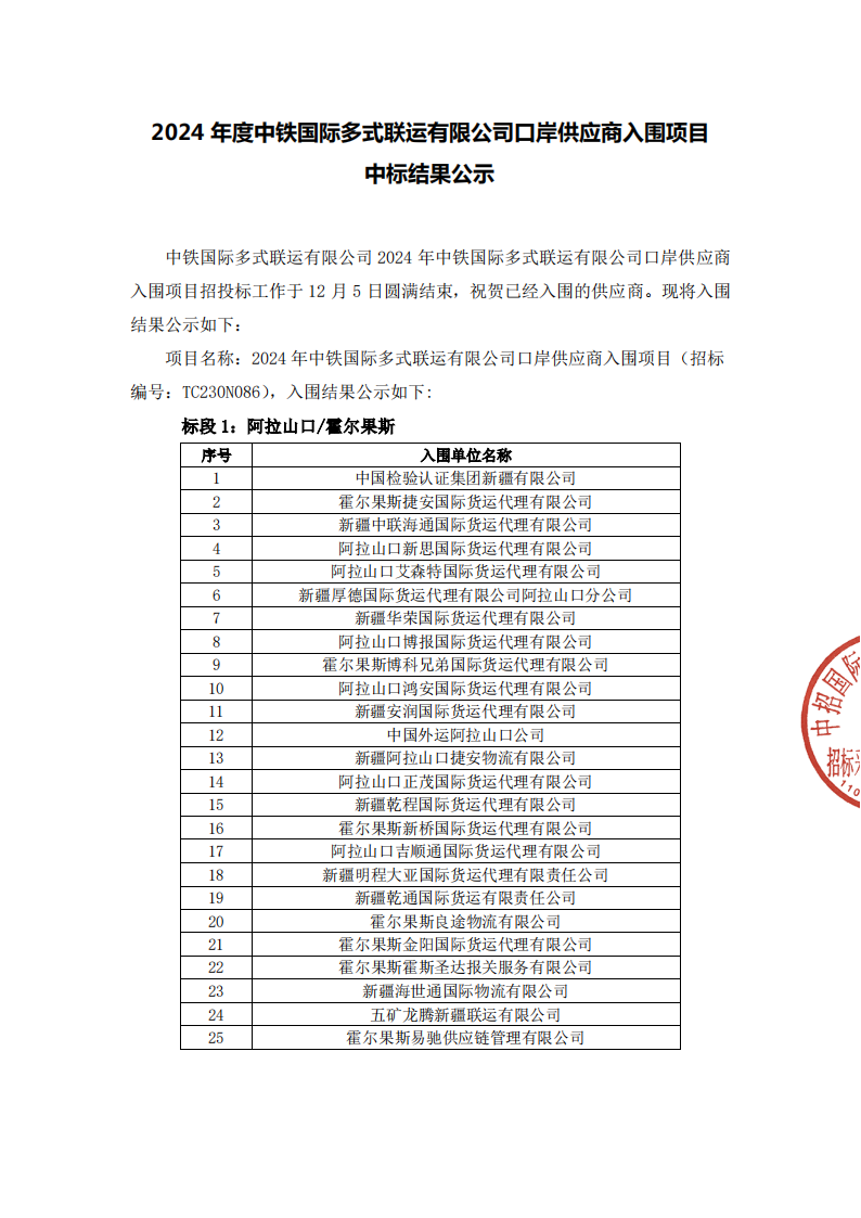 中铁国际多式联运有限公司 12月6日公布2024 年中铁国际多式联运有限公司口岸供应商入围项目,我天宇汇景集团旗下内蒙古天誉货运物流有限公司作为满洲里口岸企业成功入围,开启中欧班列进出口货运代理新业务,欢迎有业务需求的企业联系,我们将竭诚为您提供最周到、便捷的服务。