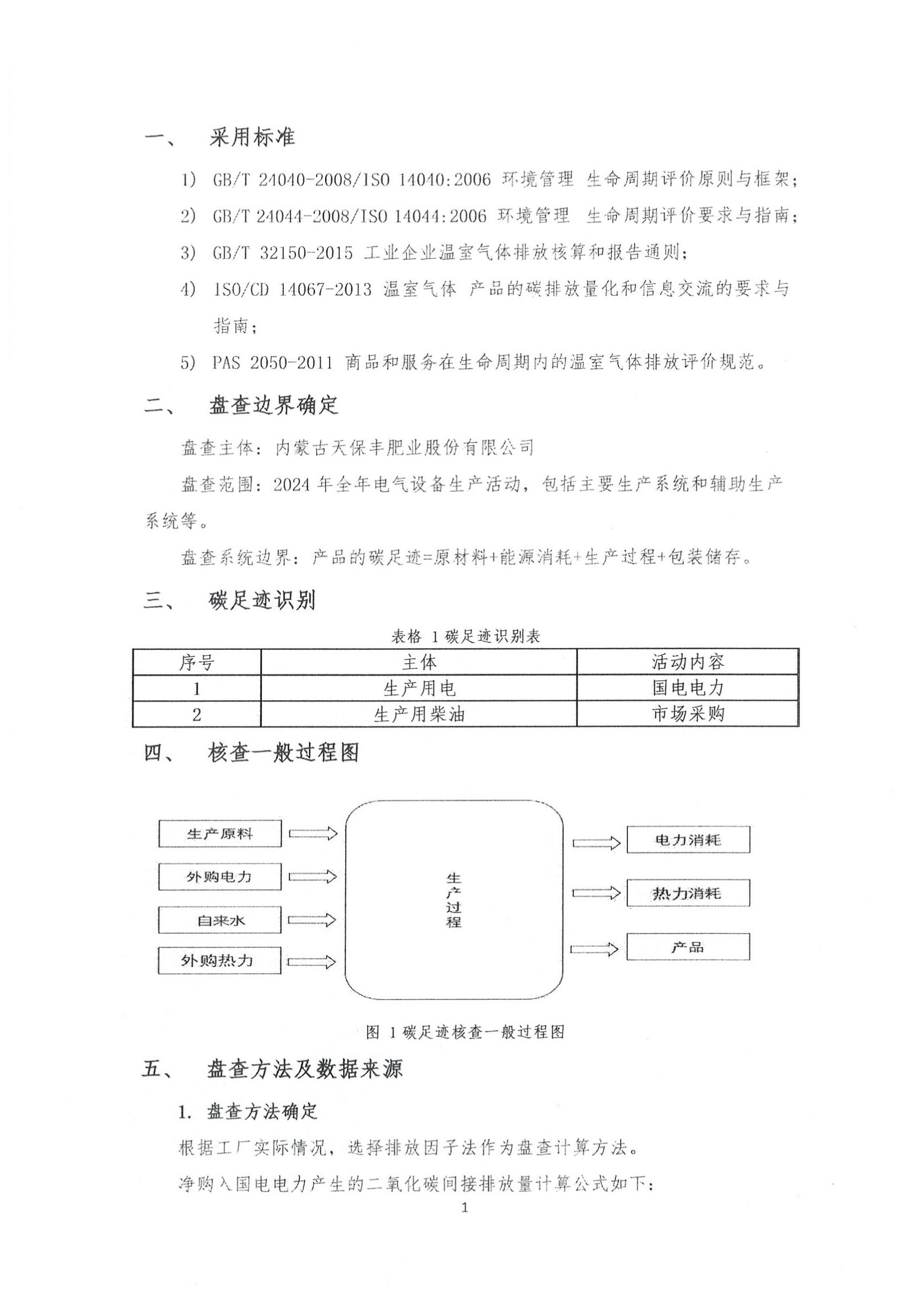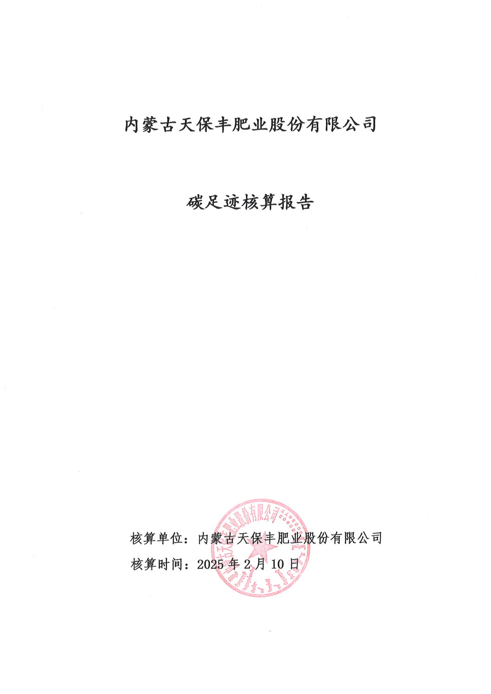 内蒙古天保丰肥业股份有限公司碳足迹核算报告