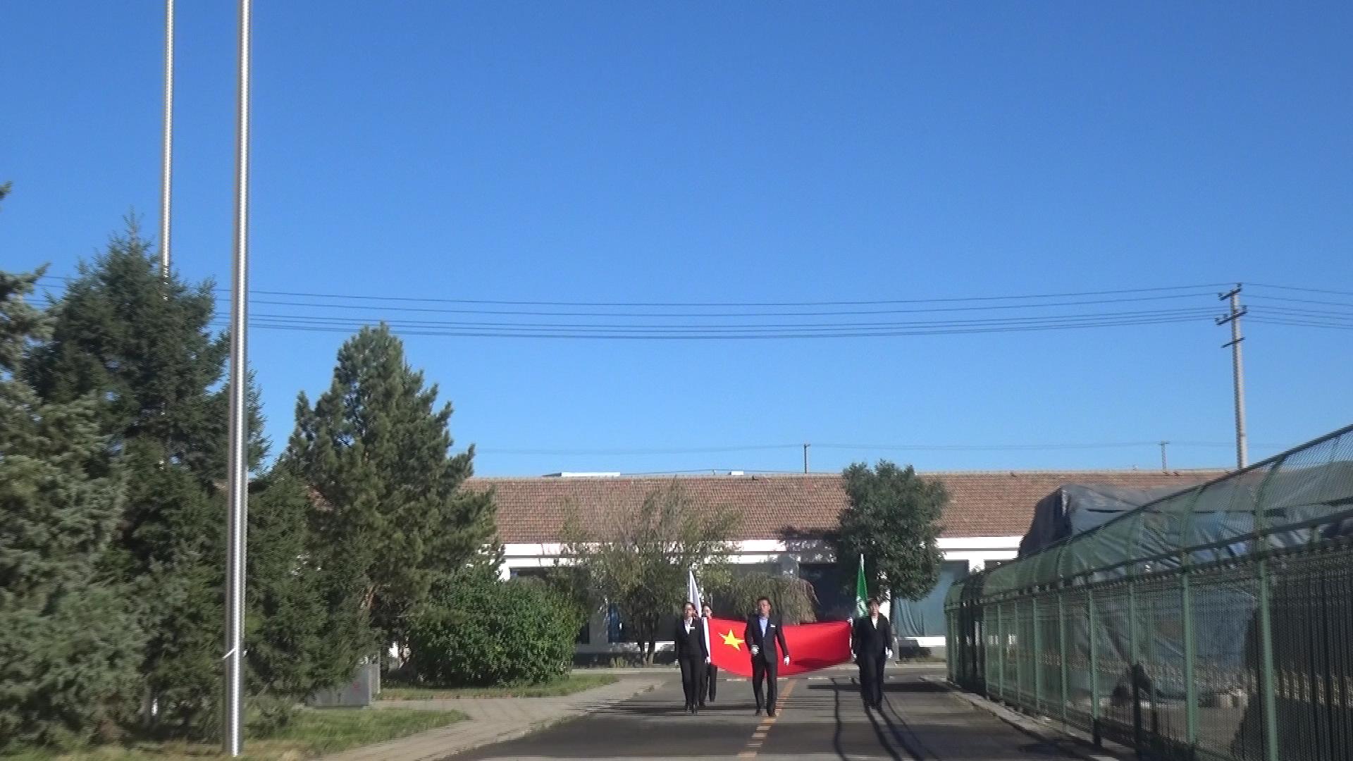 28日早上,天气晴朗、万里无云,全体员工很早就到达办公楼前广场等待升旗仪式的举行。9时18分由党支部书记富永红宣布升旗仪式正式开始,护旗队伍迈着庄严而整齐的步伐走到旗台下,国歌奏响后,国旗冉冉升起,全体员工庄重地注目着冉冉升起的国旗,表达对祖国的无限的敬意。