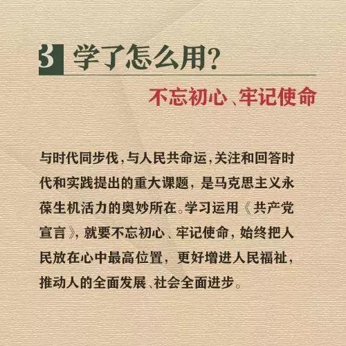 3、《共产党宣言》是一部科学洞见人类社会发展规律的经典著作,是一部充满斗争精神、批判精神、革命精神的经典著作,是一部秉持人民立场、为人民大众谋利益、为全人类谋解放的经典著作。
