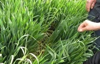 色相症状:叶色浓绿,叶尖下垂,形似“驴耳朵”,通常是小麦群体过大的细长徒长苗。灌浆后“头重脚轻”,一遇到风天、雨天或灌水时,就可能发生点片或大面积倒伏,造成严重减产。