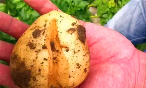 在马铃薯块茎开始膨大时,如遇干旱就会使块茎膨大速度减慢,而在此时若遇到大雨或者连续雨水,马铃薯因吸收水分充足,块茎膨大速度加快,致使块茎出现开裂现象。