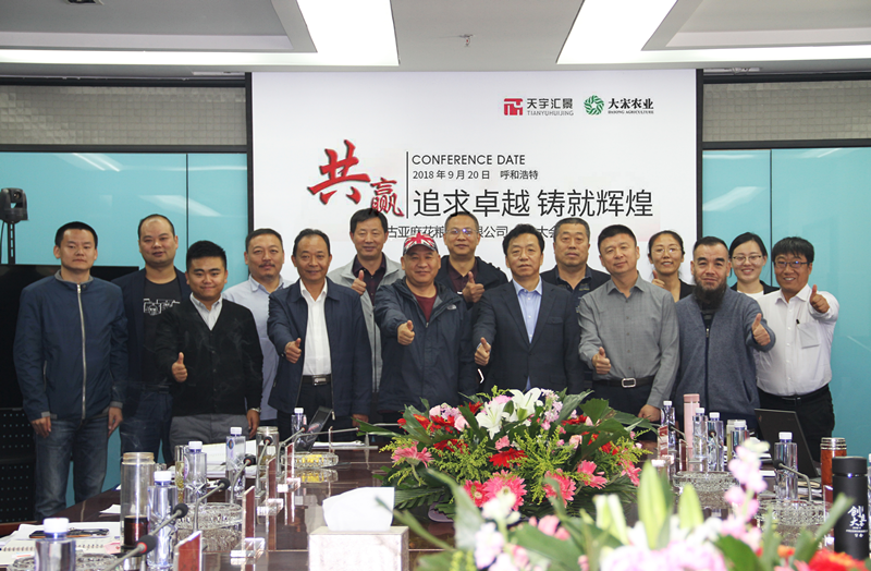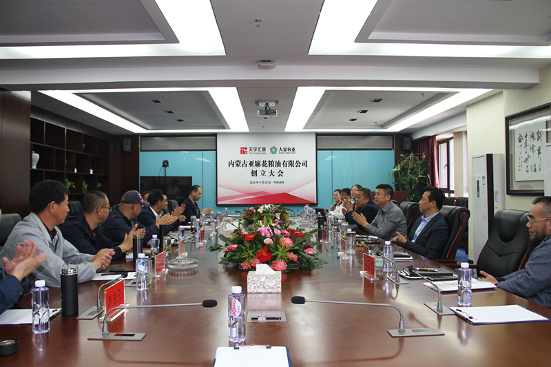 2018年9月20日,由乌兰察布市天宇农业生产资料有限公司和青海大宋农业科技有限公司合资组建的内蒙古亚麻花粮油有限公司创立大会在我集团呼和总部如期圆满召开。内蒙古亚麻花粮油有限公司的创建是我集团积极拓宽经营渠道,增加经营品种,正式涉足粮油贸易领域,增加集团新的盈利增长点。