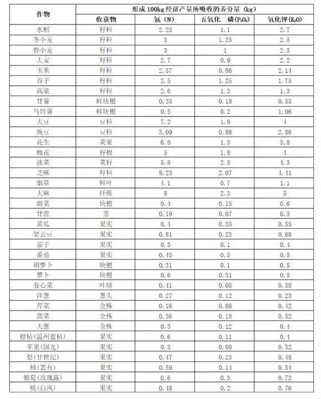 1.计划产量所需养分总量kg)=(计划产量/100)×每形成100kg产量所需养分数量(参照不同作物形成100kg经济产量所需养分大致数量表)。